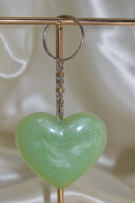 ➔ Le troisième porte-clé est représenté par un coeur de couleur. Ce porte-clé, peut être attaché à vos clés ou à votre sac. Le coeur est fabriqué en résine et est orné de couleur vert qui apportent une touche de brillance et de chaleur à votre accessoire.