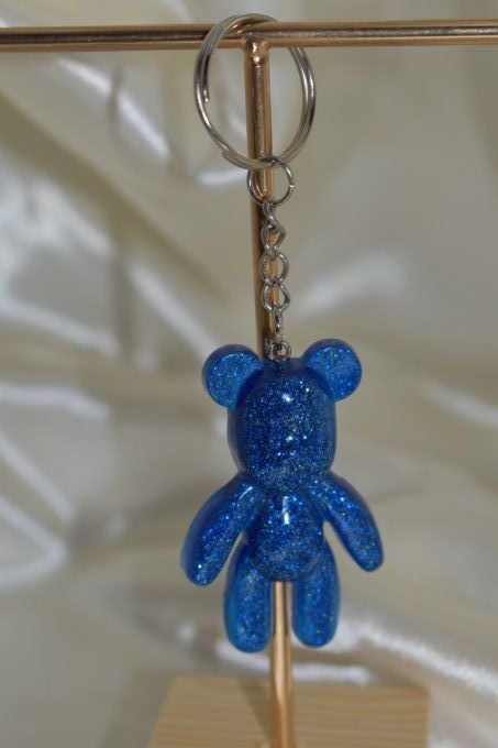 ➔ Le quatrième porte-clé est un Ourson long de couleur bleu avec des paillettes. Ce porte-clé est également parfait pour être utilisé pour décorer vos clés ou votre sac. L'ourson long est en matière de résine et il est décoré de couleur bleu avec des paillettes bleues qui lui donnent une allure vif.