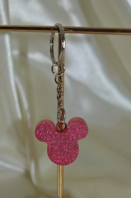 ➔ Le premier porte-clé est représenté de couleur rose avec des paillettes. Il s'agit d'un porte-clé, parfait pour accrocher à vos clés ou à votre sac. Le porte-clés est fait en matière de résine et il est orné de couleur rose avec des paillettes roses, qui lui donnent un aspect brillant.